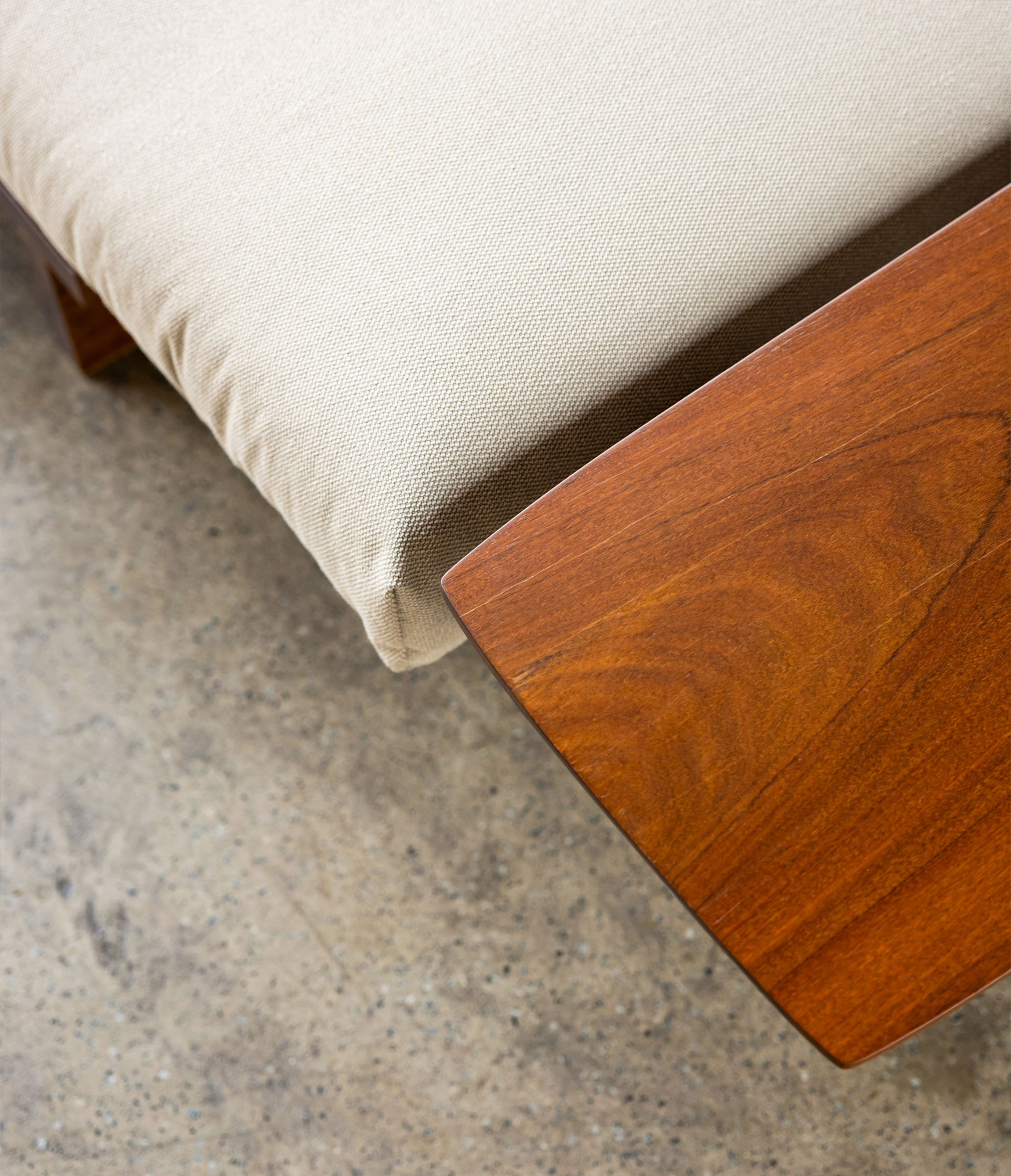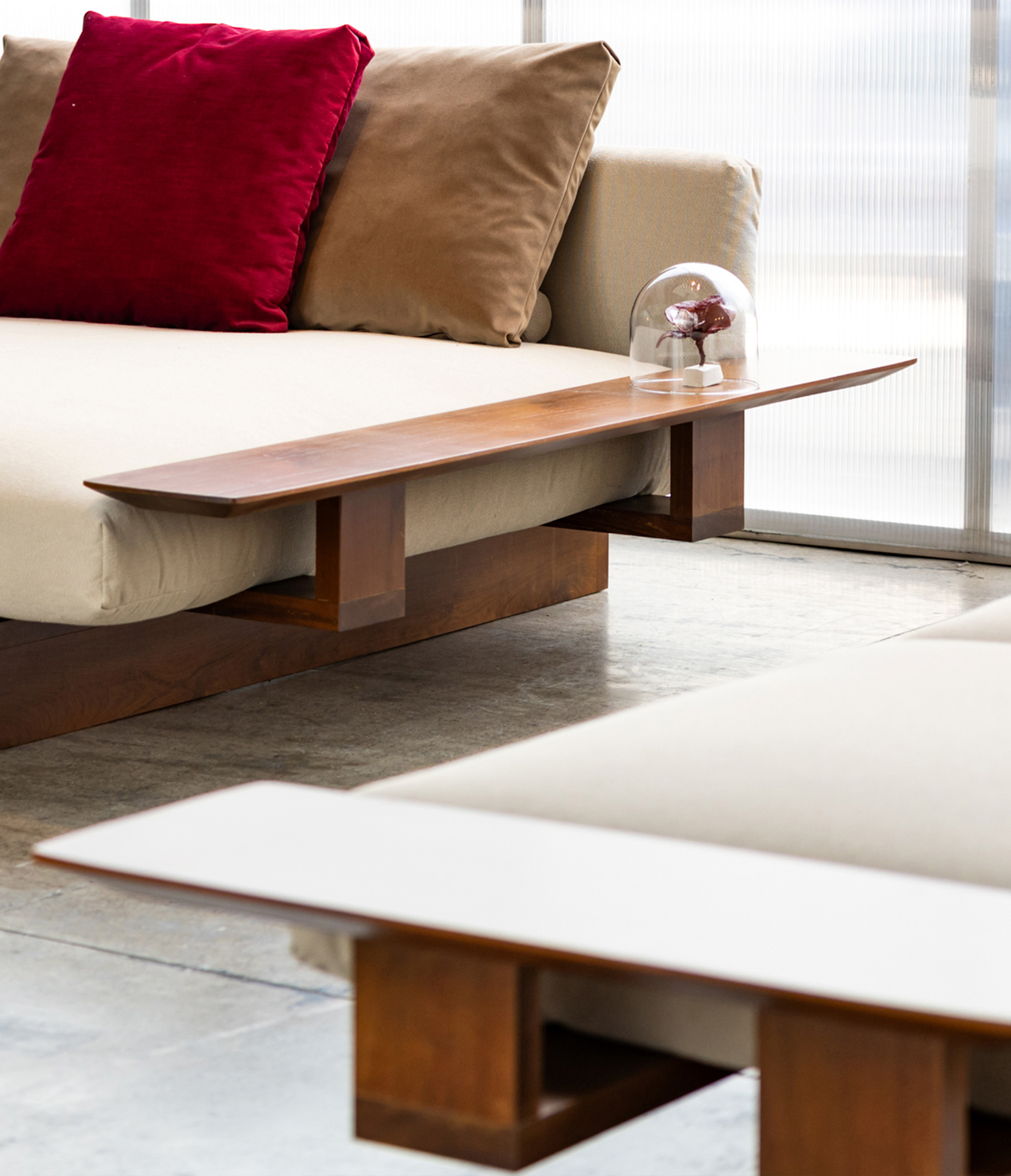 Modular, com opções para você personalizar o ambiente com diferentes configurações, inclui sofá, poltrona, banco e chaise. Com métodos de montagem através de encaixes em marcenaria a linha Vigas traz curiosidade em seu desenho.