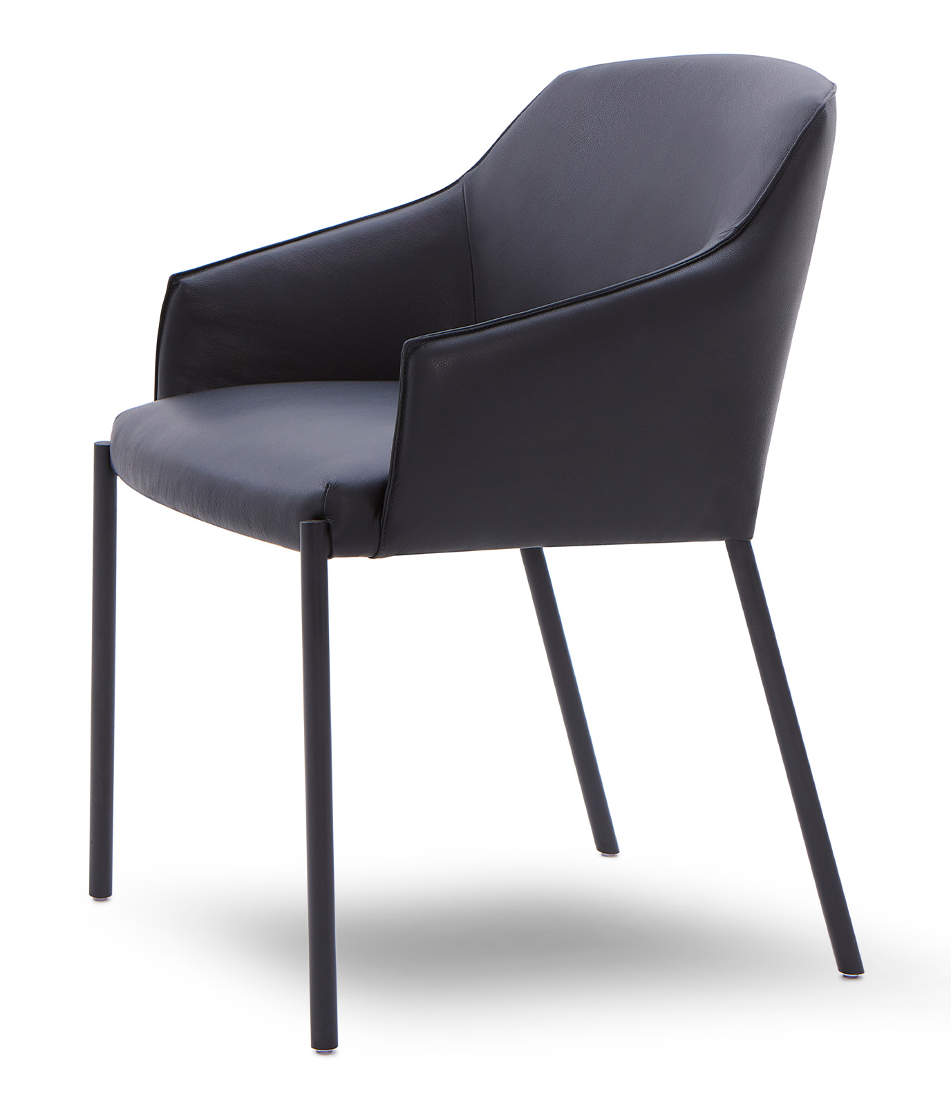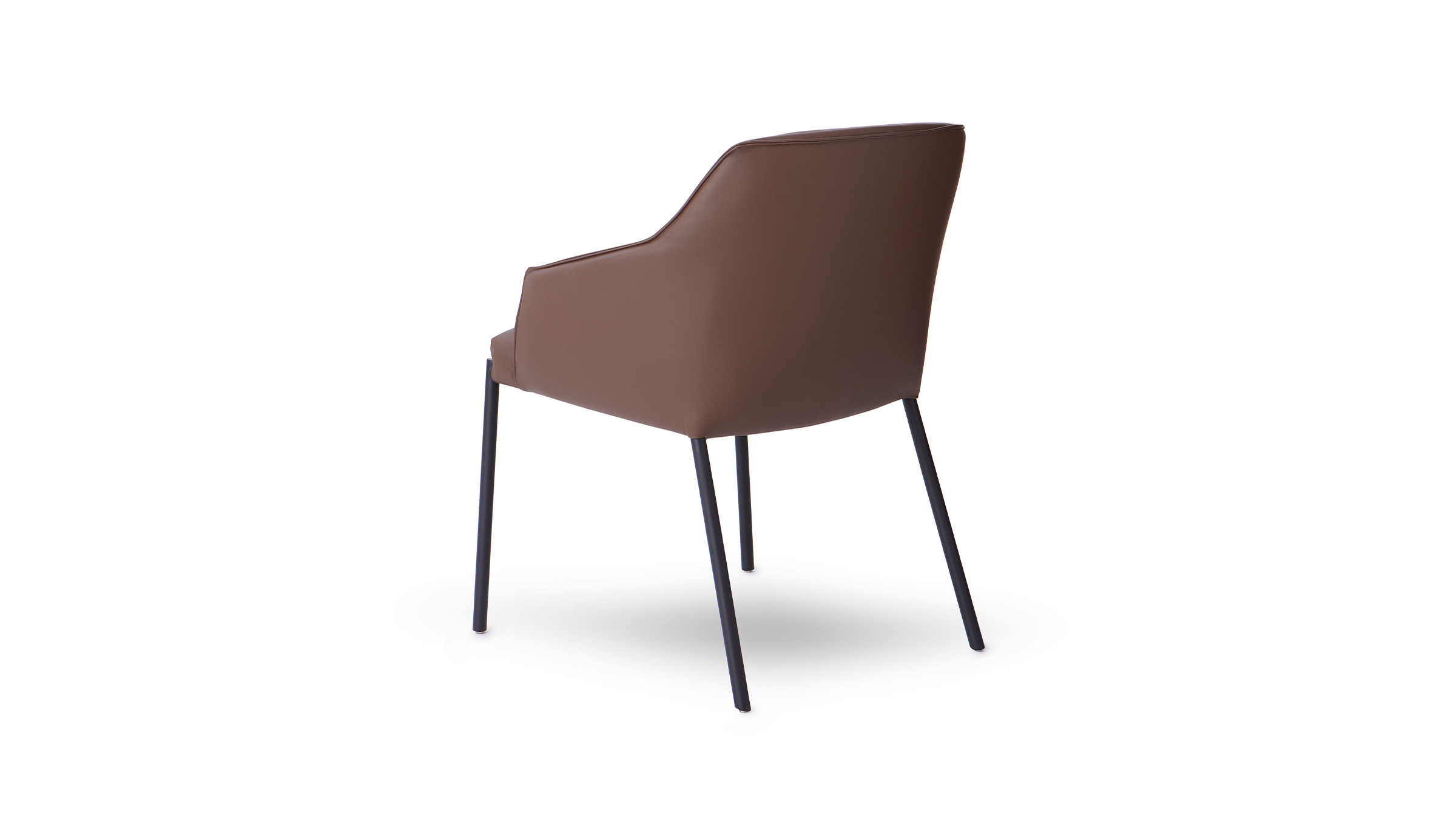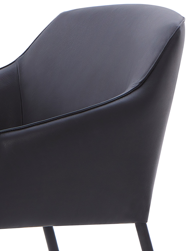 Estrutura em aço carbono com pintura eletrostática. Estofado construído com percinta e espumas de densidades variadas e enchimento com plumas naturais e sintéticas, envolto por manta acrílica. Detalhe com costura nervurinha percorrendo o encosto.