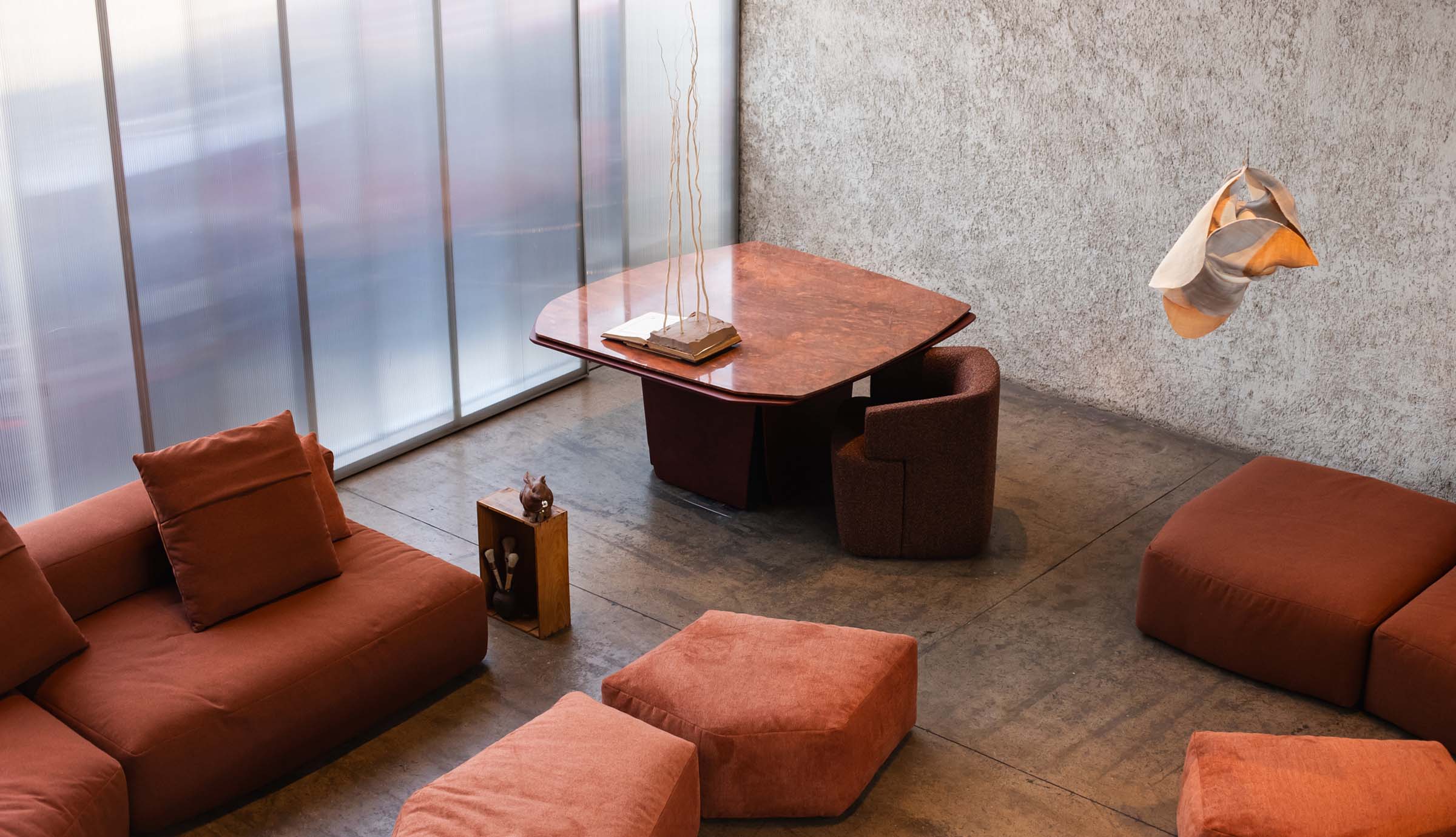 Inspirado na noção de bioma como um campo dinâmico de relações, os novos mobiliários se distribuem como um organismo.