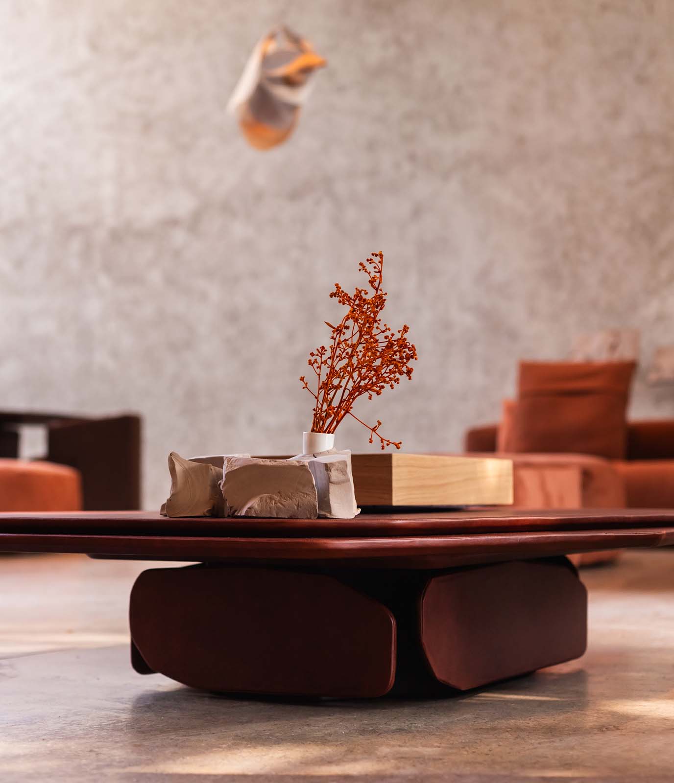 O diálogo entre os elementos organiza e estabiliza o ambiente, integrando e criando áreas de permanência onde o corpo encontra repouso.