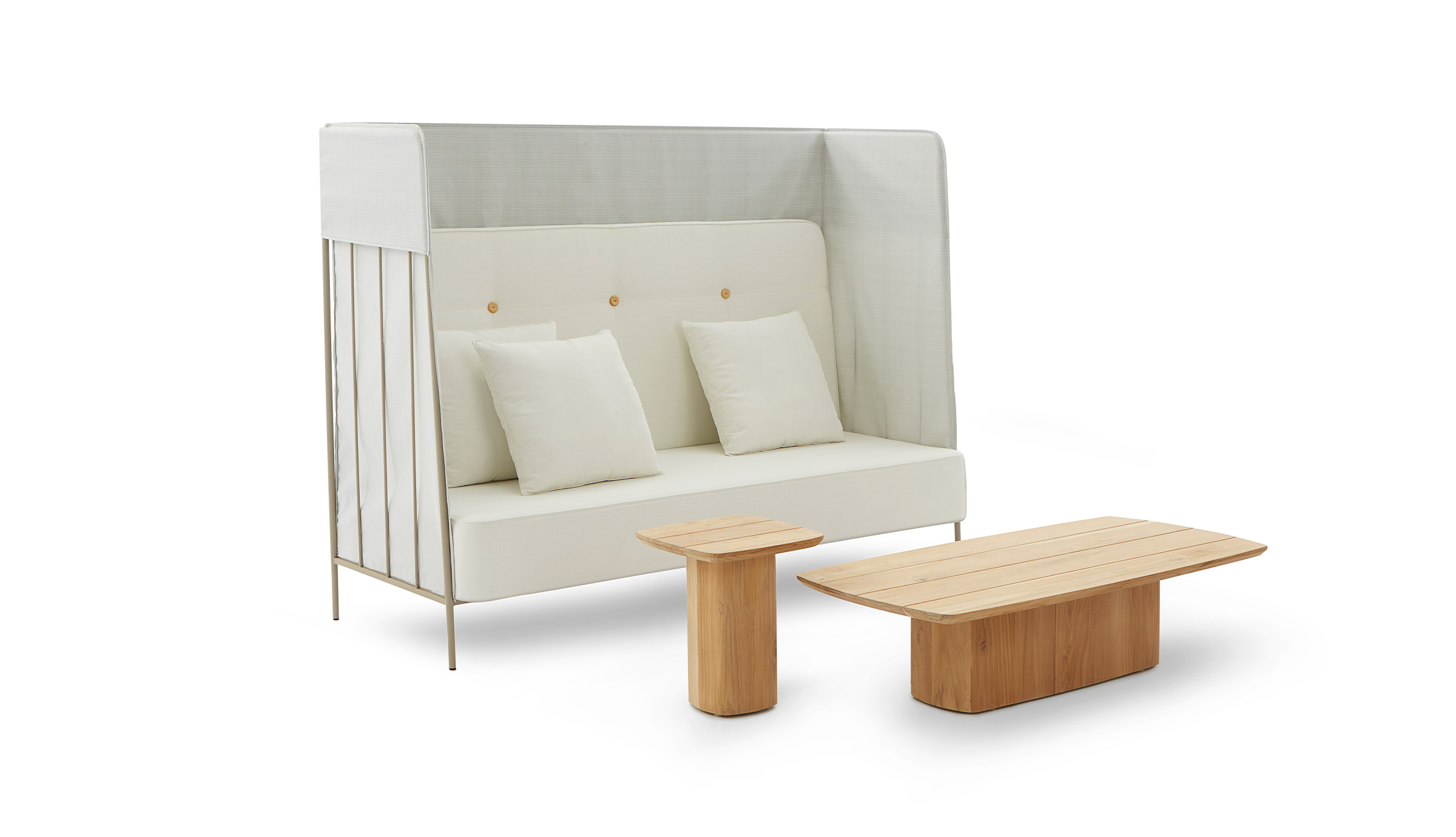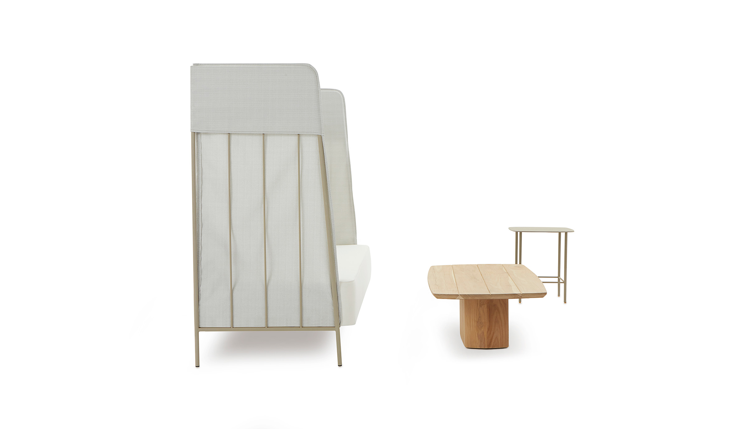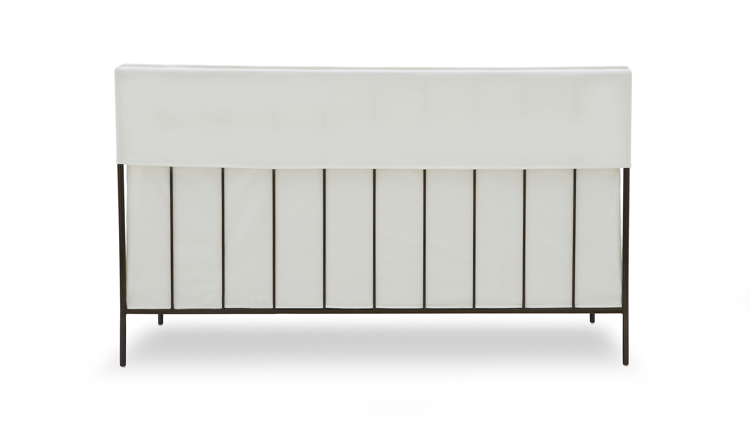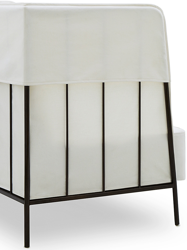 Sua presença é marcada pela verticalidade das linhas, delicadamente sobrepostas por uma capa com costura francesa.