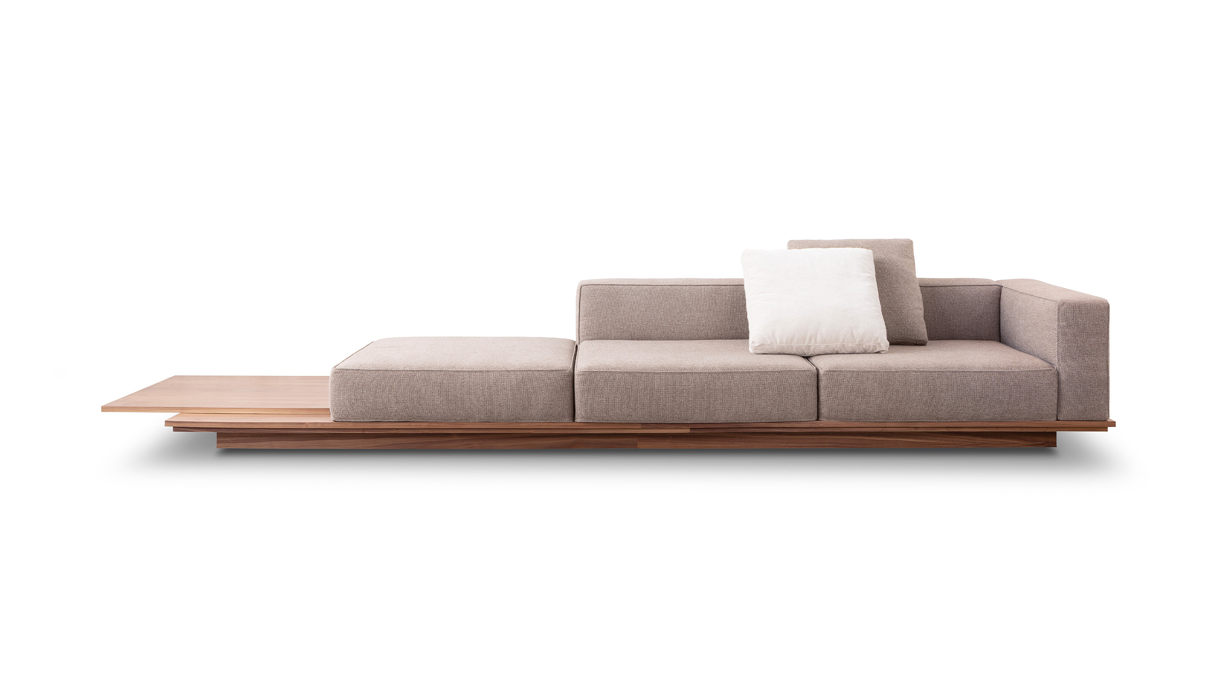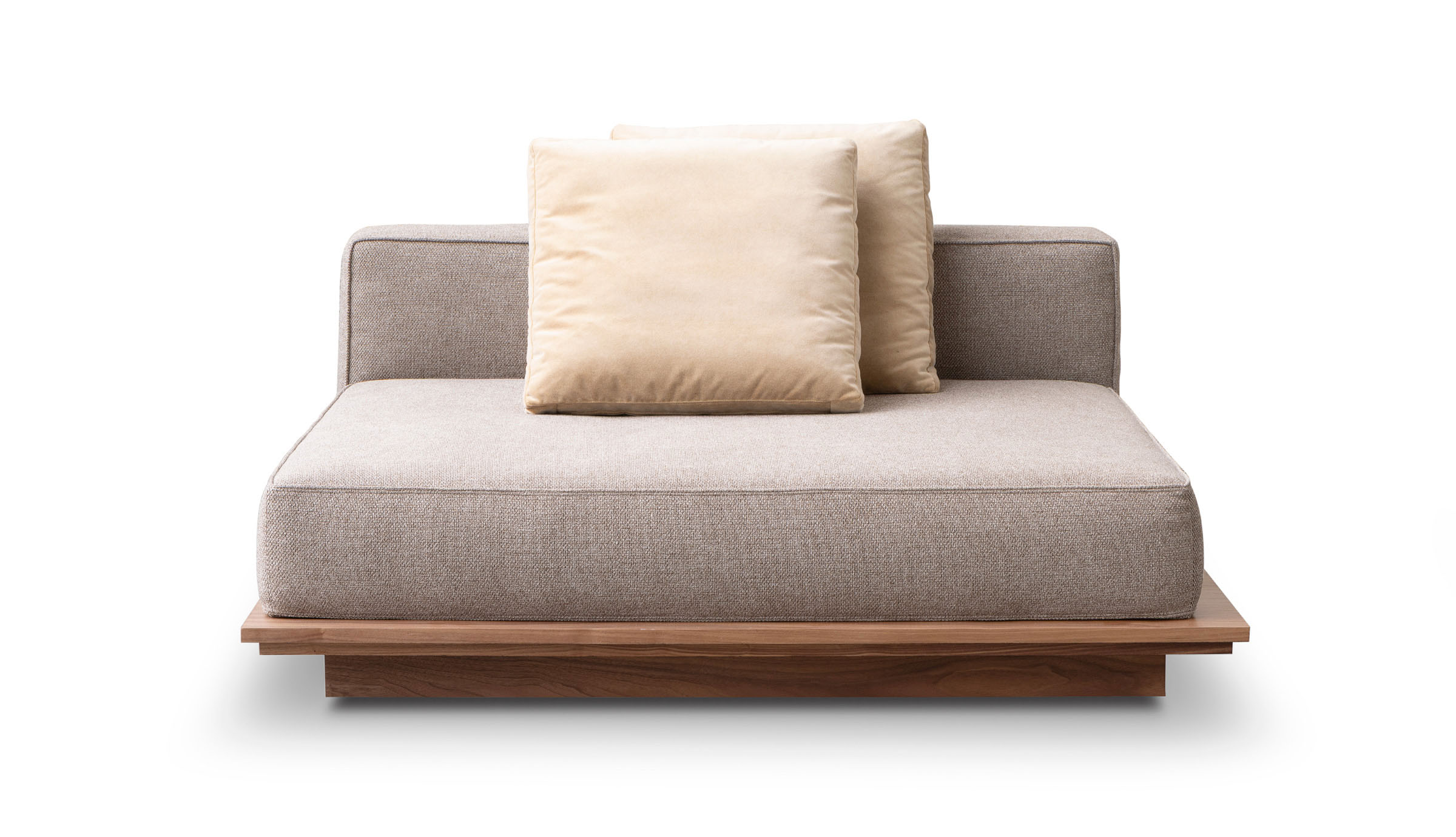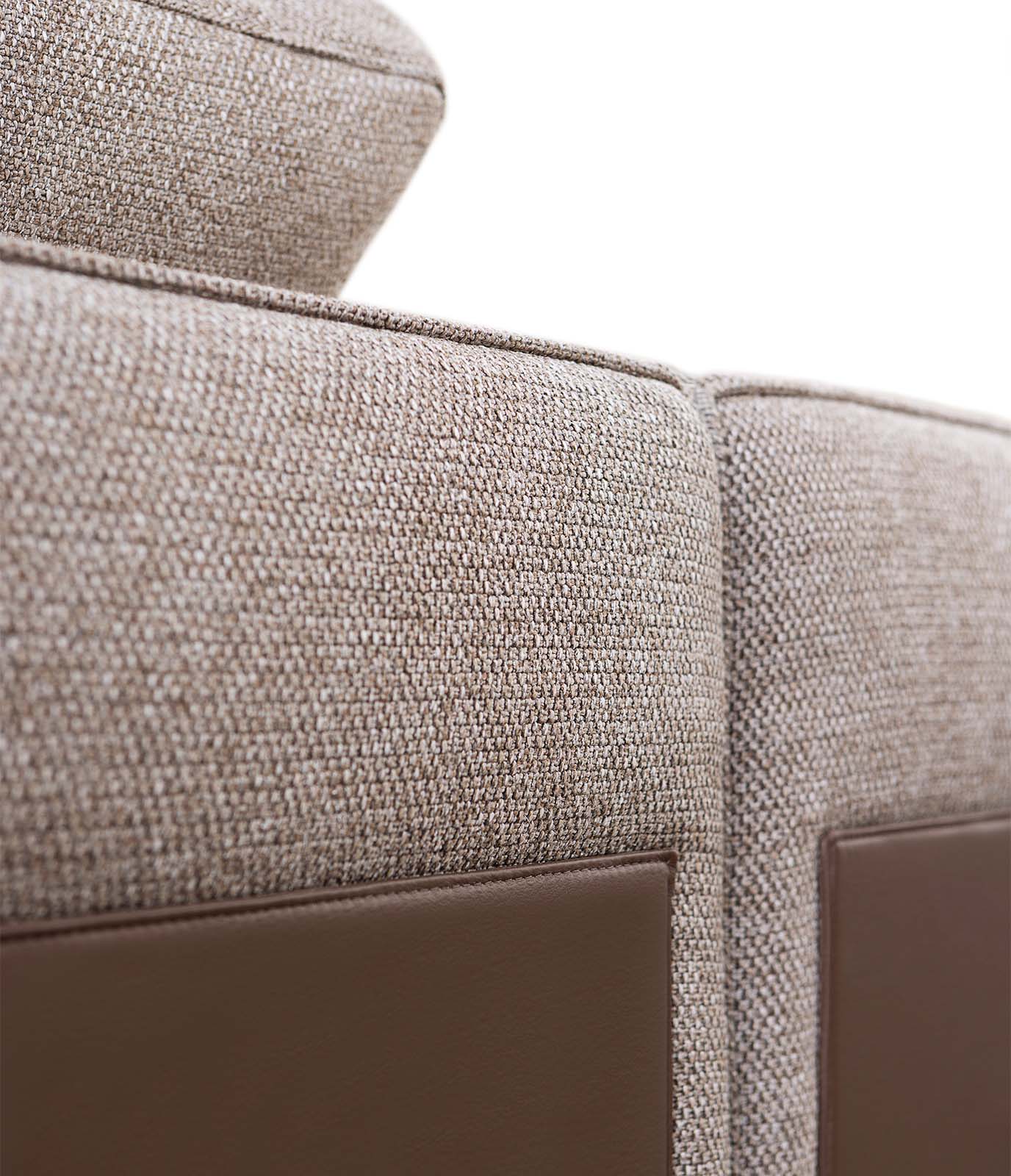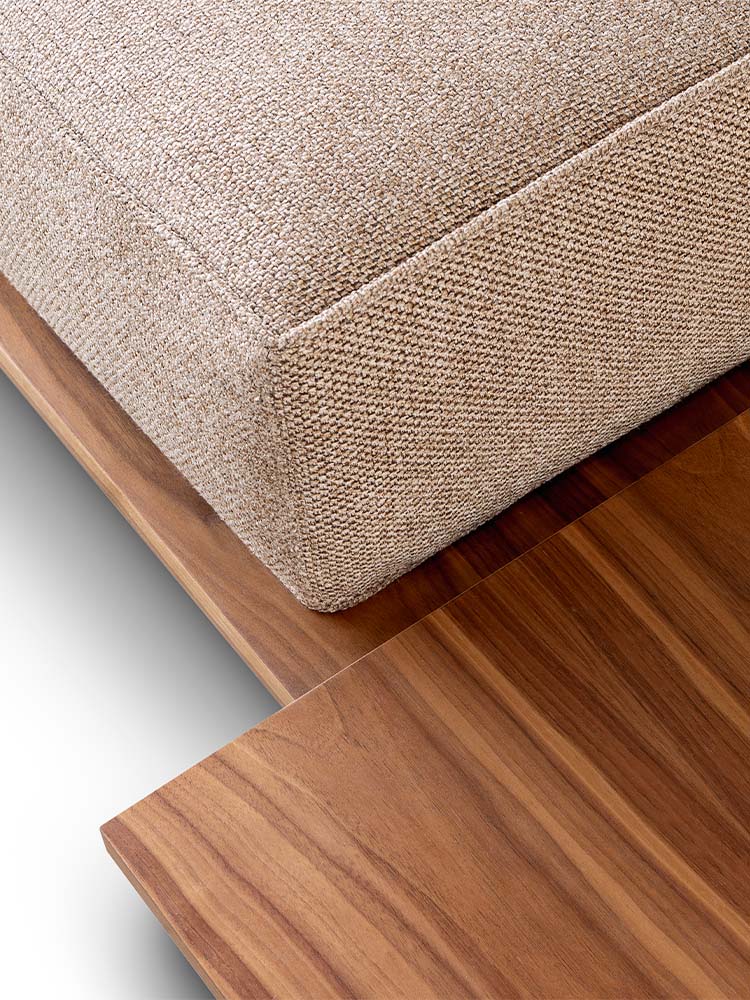 Estofado construído com percintas e espumas de densidades variadas, envolto por manta acrílica.
